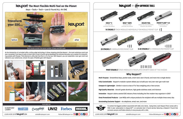 Keyport develops streamlined everyday carry solutions at the intersection of utility, convenience, technology, security, and style. Keyport’s modular system is the most flexible of its kind, allowing customers to build their very own fully customized, next-gen multi-tools for the modern lifestyle.