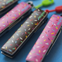 Keyport Faceplates are removable side plates that allow you to customize your Keyport Pivot, Keyport Slide or Anywhere Tools Bundles by Keyport. Faceplates are compatible with the Pivot 1.0, Pivot 2.0, Slide 3.0, Slide 4.0, Module Pocket Clip, and all Mid-Modules. The Chocolate Donut Faceplate features a durable stainless spring steel plate staked to a polycarbonate outer shell. The graphics are hardened on the outside of the PC shell with a special ink that is baked on with ultraviolet light and highly resistant to wear and tear.