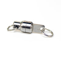 The Keyport Titanium KO Quick Release (1.7" overall length, not including split rings / 1.2 oz.) was designed exclusively for key organizers and key holders as it features a flat side so that you can add it to the Pivot pin or connect it to the D-ring. It includes aluminum casings along with non-ferrous nickel plated brass split rings (size 18mm) on each end and connect via two 1/2" diameter Neodymium rare-earth cylinder magnets (N52 rated 7 - 9 lbs). Neodymium magnets don’t require batteries, don’t wear out over time, and require no maintenance. Each UC quick release has been individually turned on a CNC and hand finished.