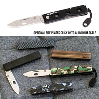 You can accessorize your NEBA Knife Module with custom Side Plates (scales), stacking other Anywhere Tools Modules, and lanyards.