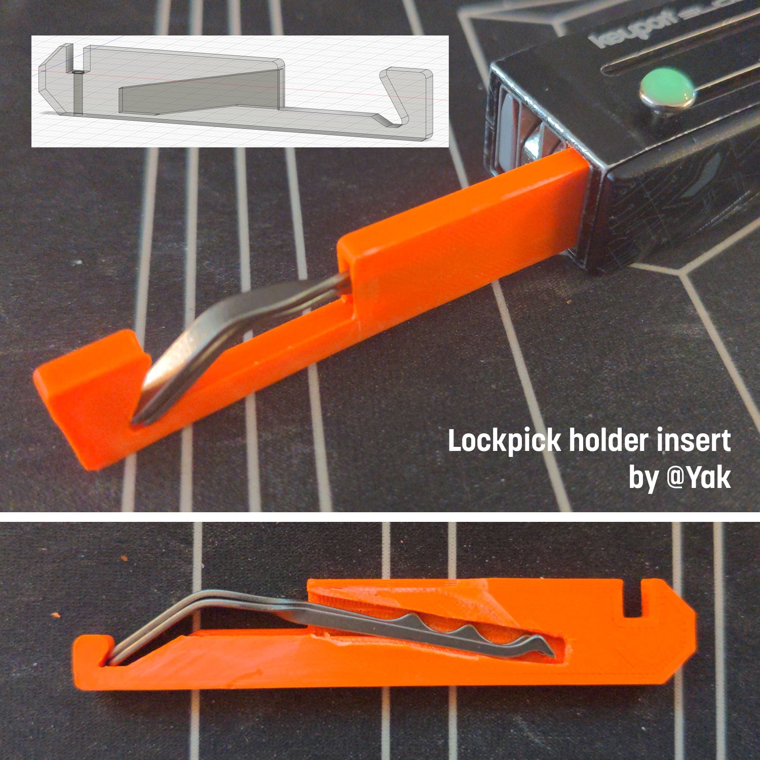 This Insert was made for the Keyport Slide by Yak, and shared on our Discord. It works with the Titan Nano Lockpick Set. The Insert was made by 3D printing long before we released the Insert Maker Files.
